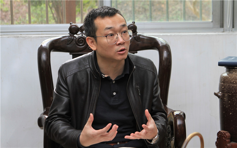 图为神悦铸造董事长占秋忆介绍公司发展情况