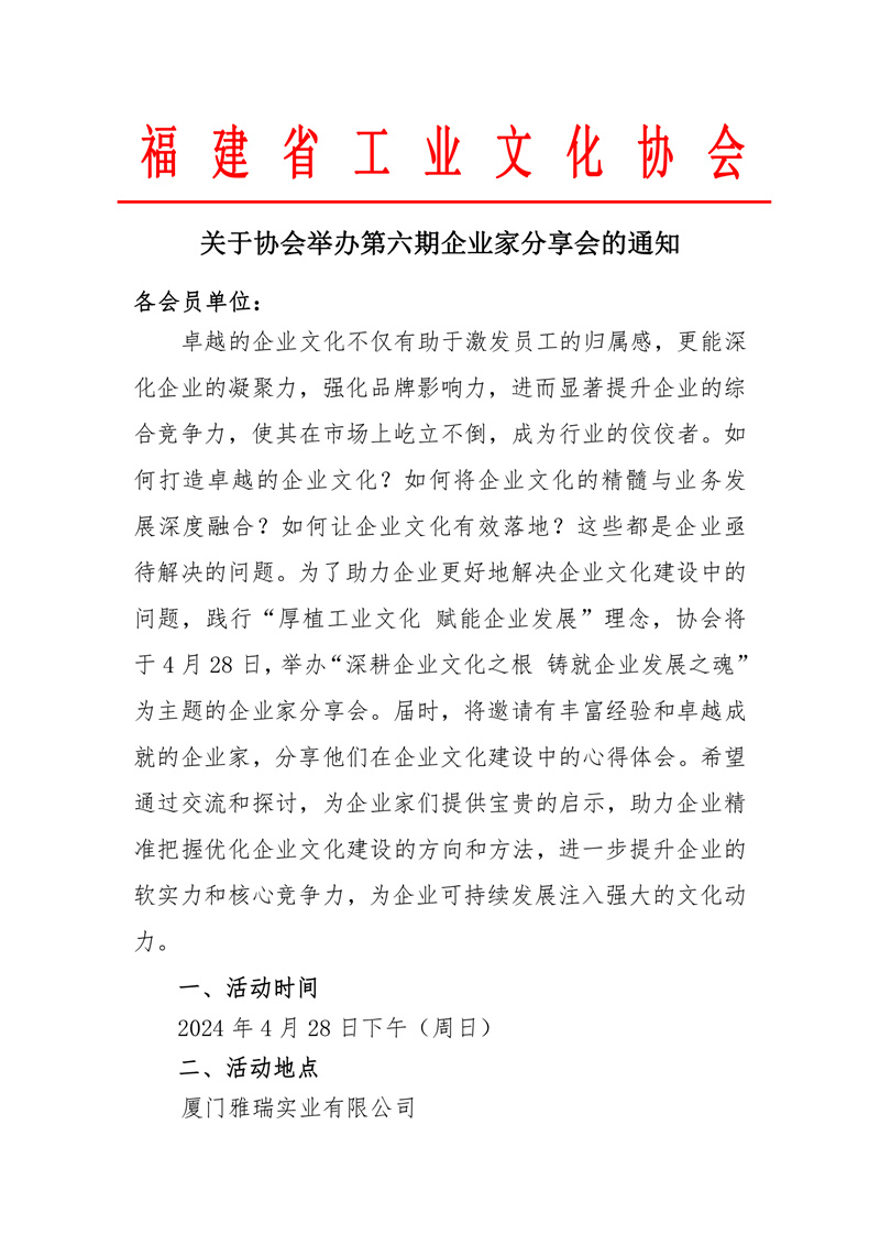 关于协会举办第六期企业家分享会的通知