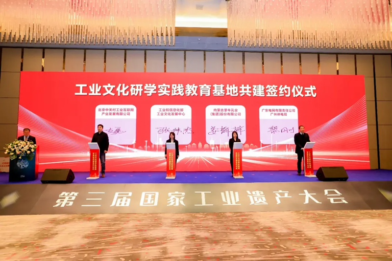 我中心携手内蒙古蒙牛乳业(集团)股份有限公司、南方电网广东广州供电局、北京中关村工业互联网产业发展有限公司等单位,共同打造工业文化研学实践教育基地,并在大会上举行签约仪式。